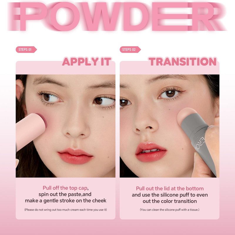 - On-the-Go Blush: The unique design of the blush balm can rotate the blush just like applying lipstick. One swipe on each cheek will do. Easy to apply and blend with brush, fingers or sponge. Perfect for traveling, no worries about powder or liquid spilling everywhere.