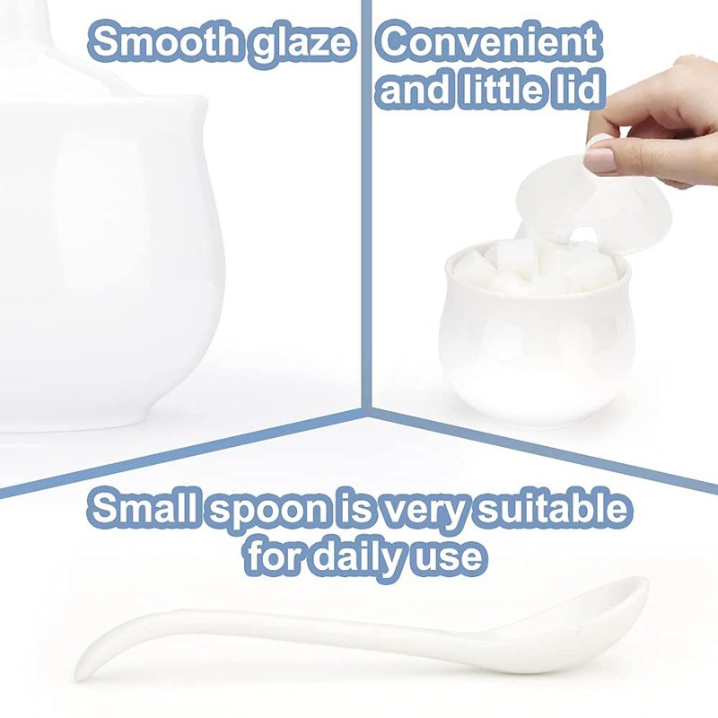- 【DESIGN CONCEPT】Classic white style and simple design. The small sugar bowl fits most basic kitchen accessories and decor nicely. It is very suitable for restaurants, families, coffee shops and other occasions. Swetwiny sugar canister is a great choice for gifts.