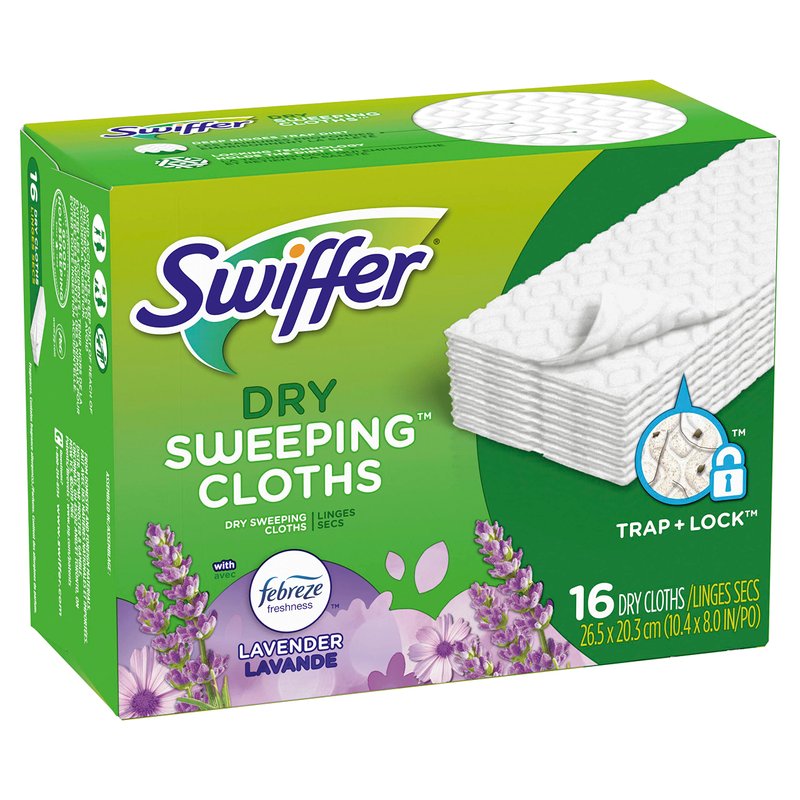Swiffer Sweeper Dry Sweeping Cloths, Mop and Broom Floor Cleaner Refills, Febreze Lavender Vanilla and Comfort Scent, 16 Count