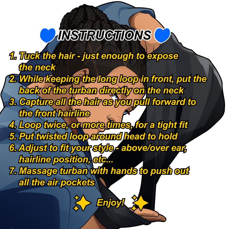- Crafted to accommodate a range of hair styles and textures from Type 2A to 4C. The turban is durable, elastic, and suitable for long, short, or natural hair styles.