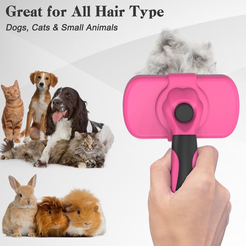 Swihauk Self Cleaning Slicker Brush for Dogs & Cats, Skin Friendly Grooming Cat Brush, Dog Brush for Shedding, Deshedding Brush, Hair Brush Puppy Brush for Haired Dogs, Pet Supplies Accessories, Pink