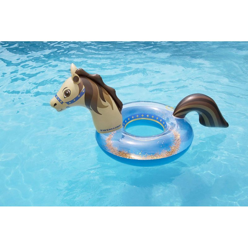 Swimline Hobby Horse Glitter Inflatable Pool Ring, Multi, 67"x 37" x 31"