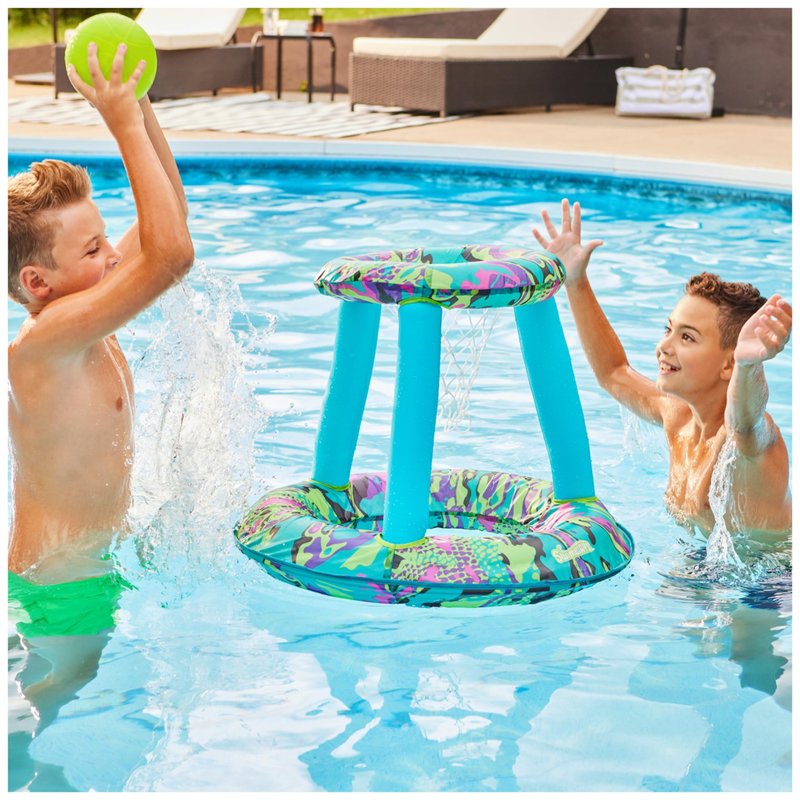 - FLOATING BASKETBALL SET: Great for pool parties, endless summer days, and vacations, this inflatable pool game set includes 1 floating net and 1 ball; Carry/storage bag included; For ages 5 and up