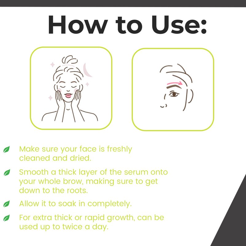 - Easy to Apply: Apply this fast-acting eyebrow growth serum on clean, dry brows, covering from roots to tips. For quicker, thicker growth, use it twice daily. For lush lashes, we also offer a dedicated eyelash serum