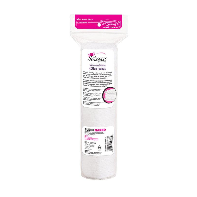 Swisspers Premium Exfoliating Rounds, 2 Distinct Raised Textured Surface, Cotton Facial Pads, 80 Count Re-closable Bag