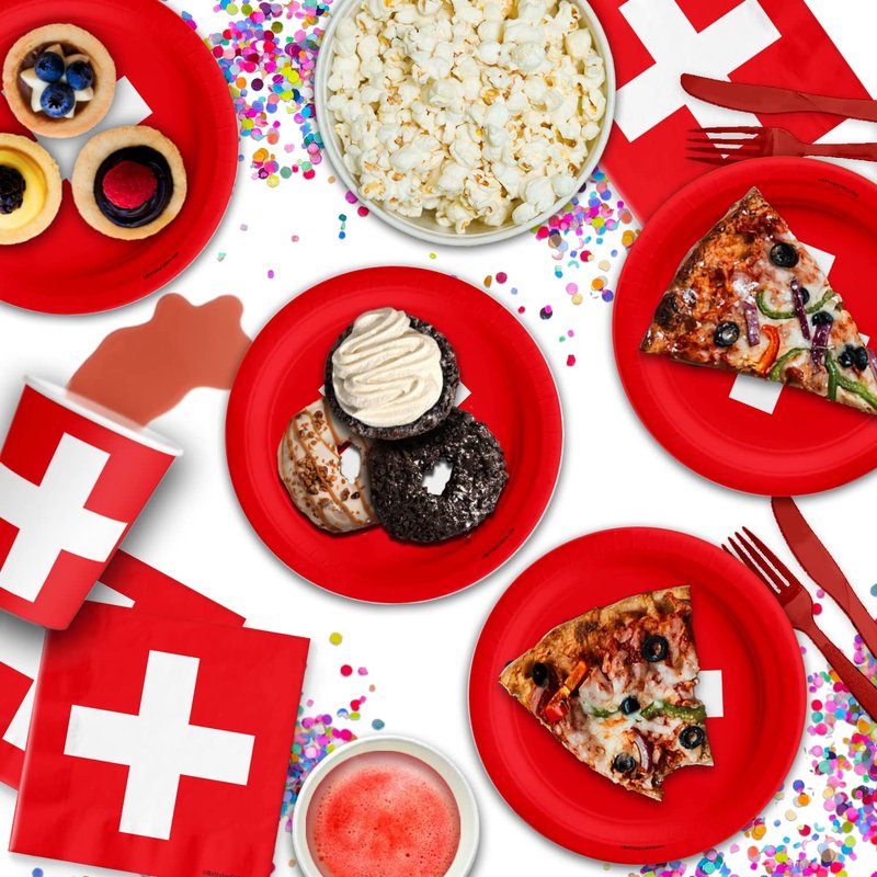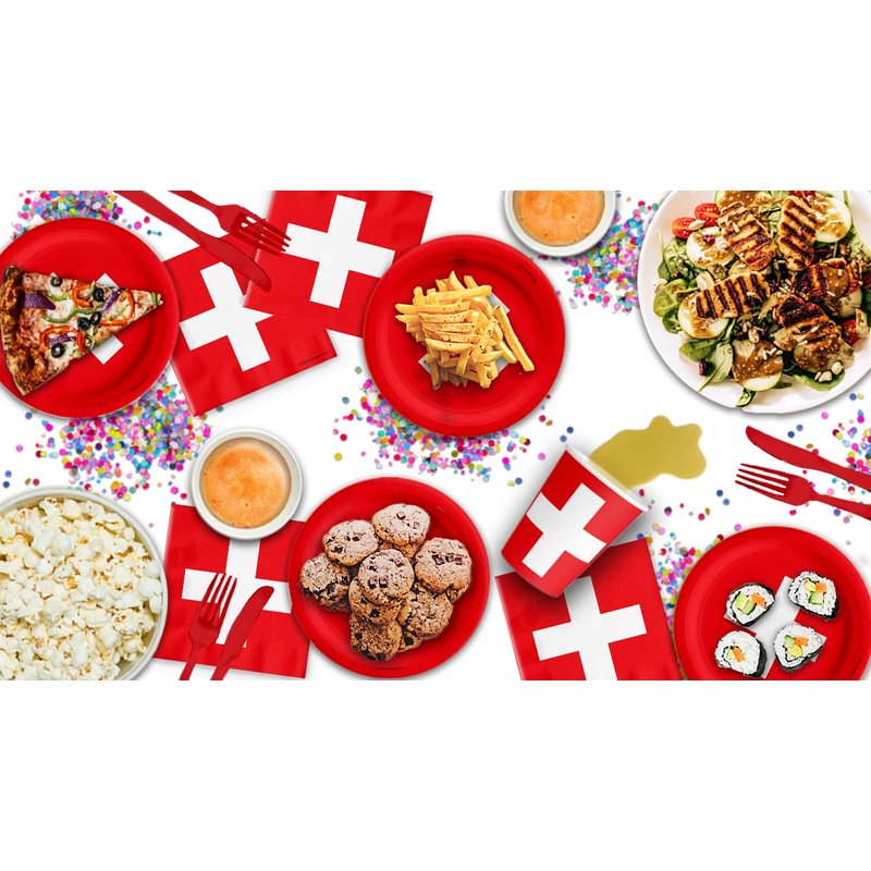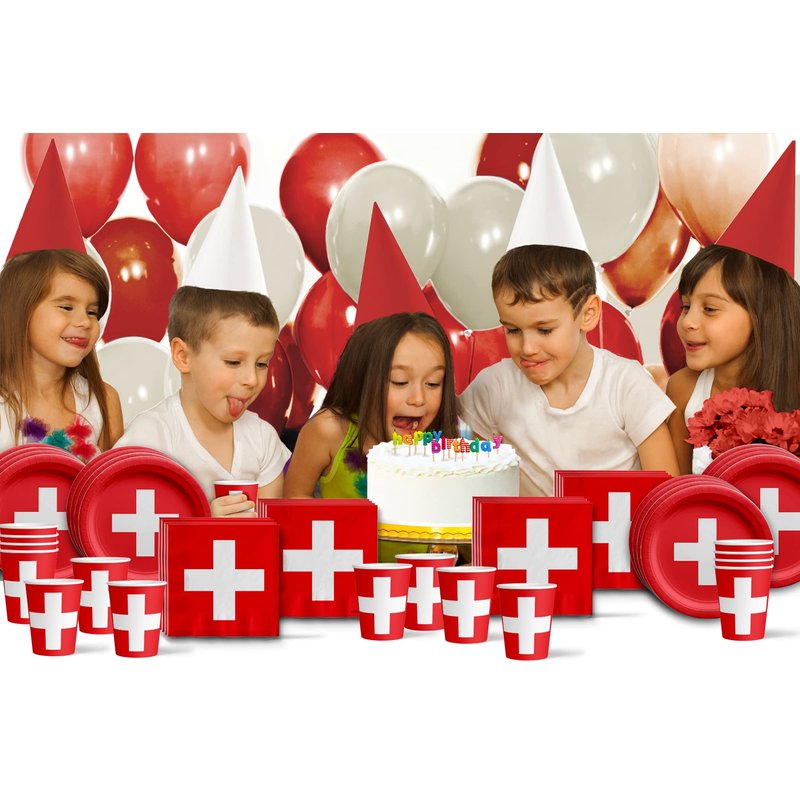 - PREMIUM DESIGN - Our Switzerland Flag Theme Party Supplies are suitable for girls and boys birthday parties, birthday celebrations with your family and friends, baby showers or for just fun-filled daily meals, snacks, and desserts with picnics and cookouts. Shrieks of joy will be your reward when you use these fun and unique party supplies.