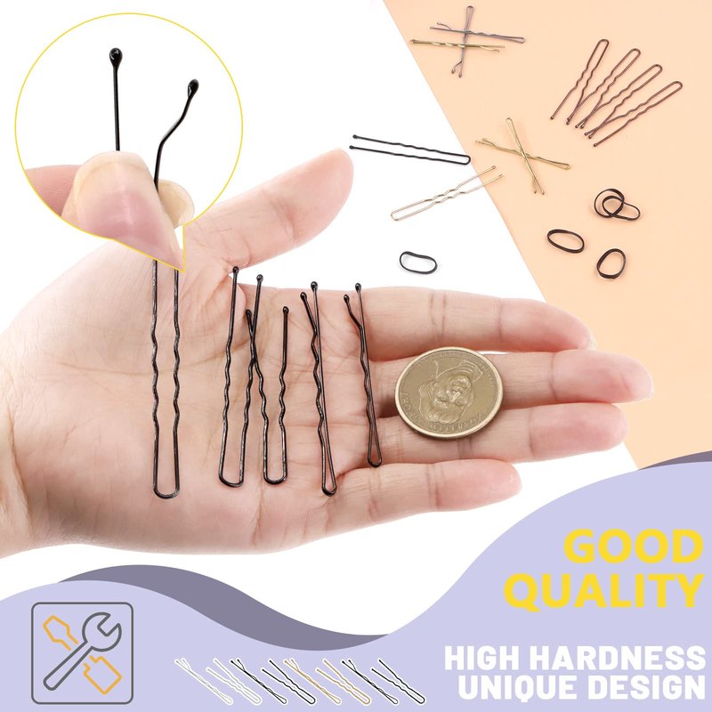 - ✿ HIGH QUALITY ---- You will get Including 160Pcs Bobby Pins and 160Pcs U Hair Pins Hair Clips with 100Pcs Soft Elastic Bands. Intotal 420Pcs. These hair pins are made of good quality metal and not easy to break; No easy to fade after applying for a long time. After a long period of use, there will be slight fading.This is normal. Please do not mind.