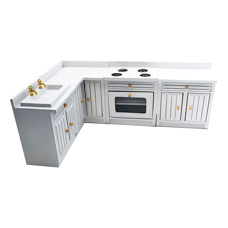 SXFSE Dollhouse Decoration Accessories,1:12 Dollhouse Miniature Furniture Wooden Kitchen Cabinet Set Freely Combined (White)