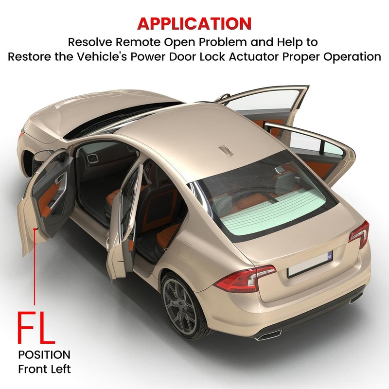 - [Positions] - Replace Front Left Driver Side Lock Actuator: If the lifter of your vehicle cannot be locked or is not properly unlocked,the problem may be in the lock actuator, This latch is manufactured to the OE specification to provide factory-fresh appearance and direct-fit, that enables proper door locking function. OE connector helps ensure a solid, positive connection.