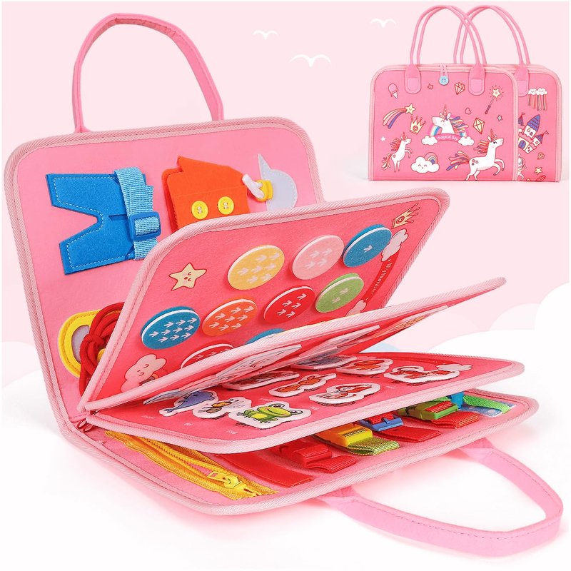 - ✨ Soft & Safe Materials - We utilize safe and high quality materials in combination with gorgeous looking designs to create this activity board. They are made of safe, premium wool material and strong and durable enough to withstand the stress of normal play, the board and the fastenings on it are soft yet sturdy. It is packed in boxes, which make a perfect gifts for girls and boys.