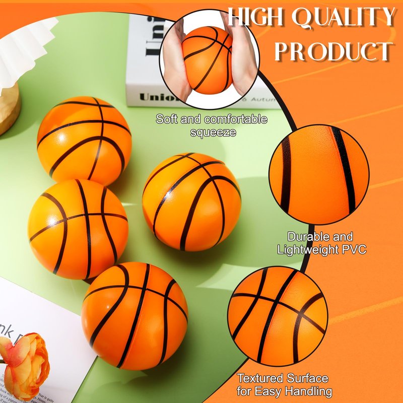 Features: Ideal gift choices: This basketball party favor makes an ideal present for basketball fans or people who need to relieve stress. As a stress reliever, game item, or party favor, these mini foam basketballs make for the perfect gift that's both fun and useful. Portable entertainment device: This mini basketball stress ball features a compact size, they are easy to carry around, and you can easily put this ball in your bag, and play them when you feel bored or need to relieve stress. Specifications: Material: PU Color: as the pictures shown Size: approx. 4 x 4 inches/ 10 x 10 cm Package includes: 4 x Mini basketball stress balls Notes: Manual measurement, please allow slight errors on size. The color may exist a slight difference due to different screen displays. Please note the size before ordering. Little ones should use our product under the supervision of adults. Small items, adult supervision is needed when it is played by people under 3 years old to avoid swallowing risk.