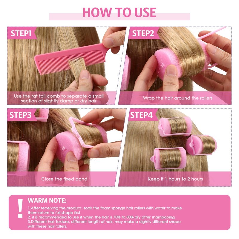 - Durable and reusable: these hair curlers are made of foam sponge, the rat tail comb is made of steel and plastic, both of them are durable and long lasting, these rollers do not require heating, safe and reliable, won't pull your hair, you can enjoy the hair styling at home many times