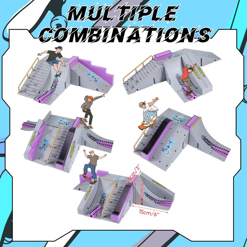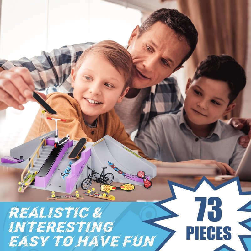 - Easy Assembly: equipped with toy ramp for easy assembly and maintenance, users will not only enjoy playing with their mini skate park, but they will also learn basic technical skills as they assemble and disassemble toys, which contains 7 ramps for various sites