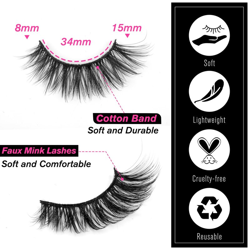 - Beginner Friendly - Strip eyelashes are easy to apply and remove. Even lash beginners can get charming look by themself. The lashes is also reusable with proper care.