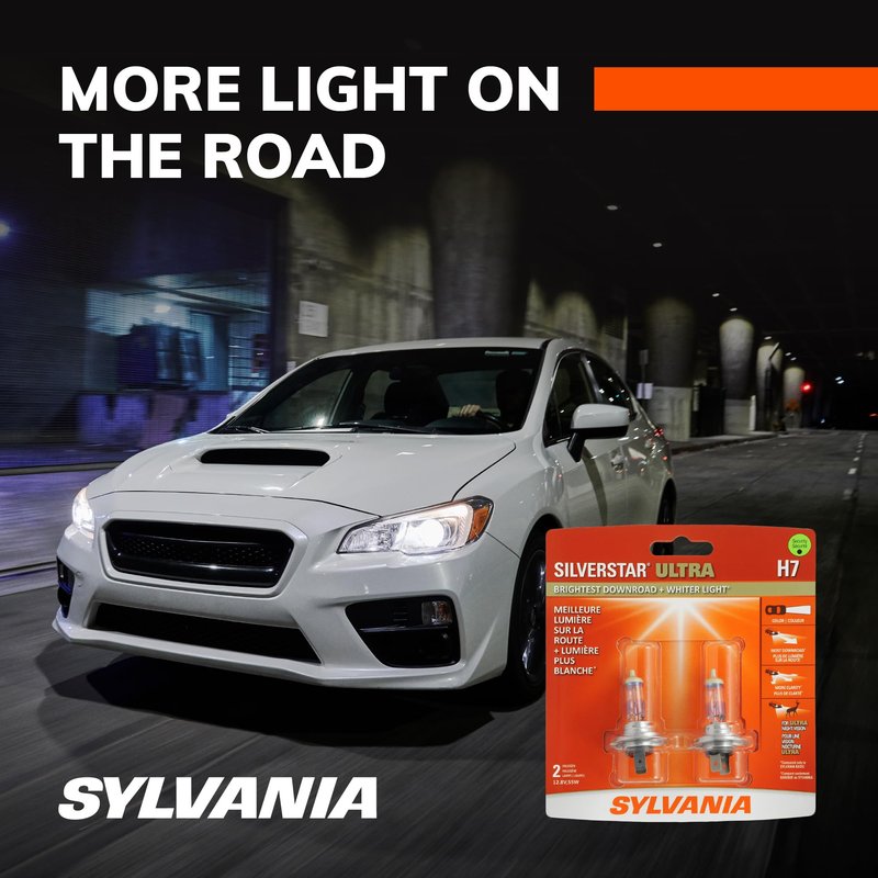 SYLVANIA - H7 SilverStar Ultra - High Performance Halogen Headlight Bulb, High Beam, Low Beam and Fog Replacement Bulb, Brightest Downroad with Whiter Light, Tri-Band Technology (Contains 2 Bulbs)
