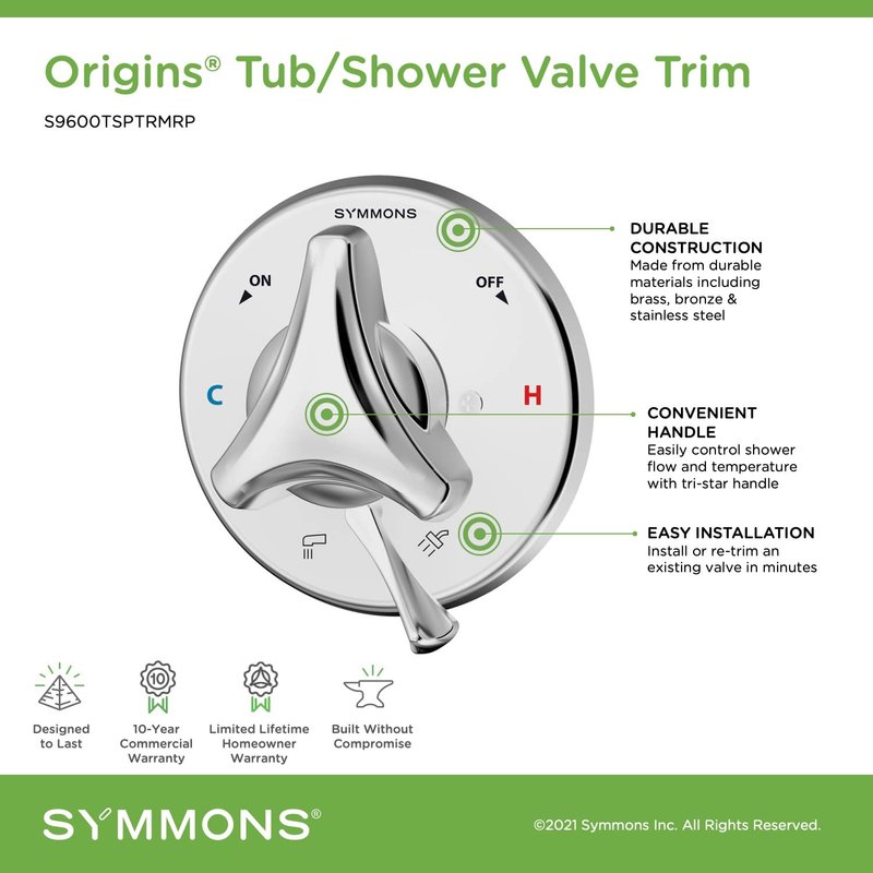 Symmons S9600TSPTRMRP Origins Tub/Shower Valve Trim (Valve Not Included),Polished Chrome, 2.88 x 5.8 x 5.8 inches