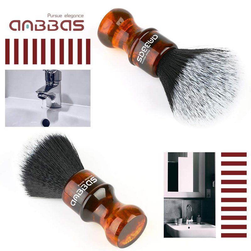 Synthetic Badger Shaving Brush with Resin Handle Nylon Bristles Hair Anbbas Lathering Foam Brush for Men Travel Professional Wet Shaving(Amber,Knot: 24 mm)