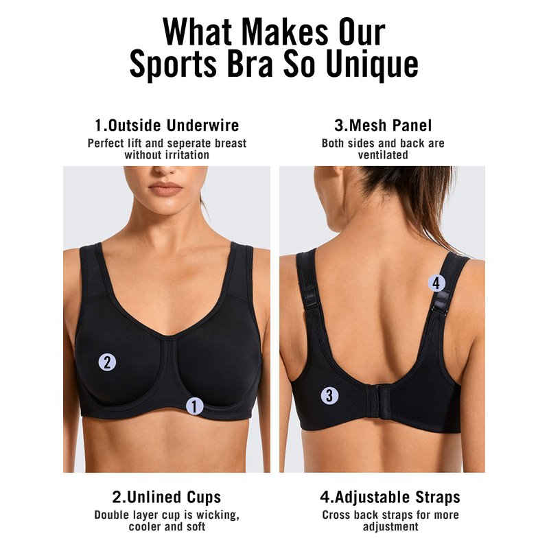 SYROKAN Women's Max Control Underwire Sports Bra High Impact Plus Size with Adjustable Straps Black 34D