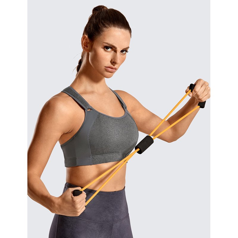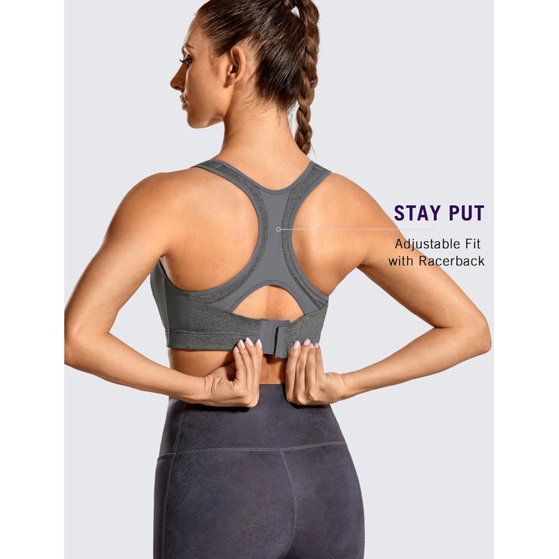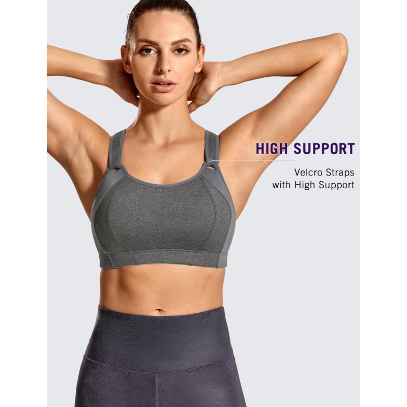 SYROKAN Women's Sports Bra Front Adjustable High Impact Support Padded Wireless Racerback Plus Size Running Bra Grey 36DD