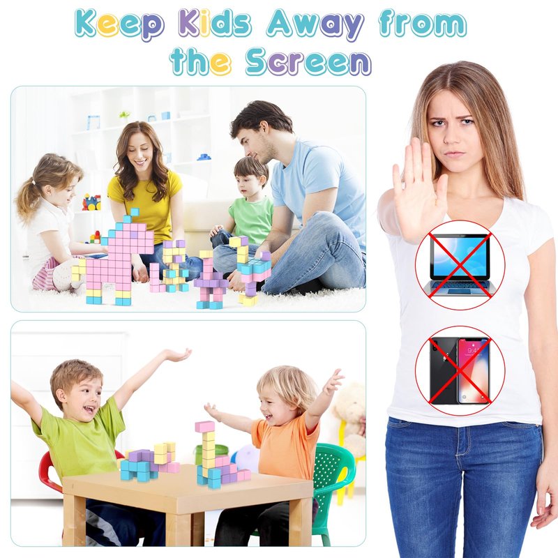 - 【Sensory STEM Montessori Learning Toys】Magnetic toys for ages 2-4 5-7 can help to inspire kids valuable 3D spatial thinking,math,art,tactile motor skills and develop color recognize.And the magnetic toys & games also rustle like little bells while playing with it,which will attract toddlers'attention and delight them.Bright macaron colors of montessori toys for 2 3 year old boys girls toddler kids will attract kids attention and keep them away from screens.
