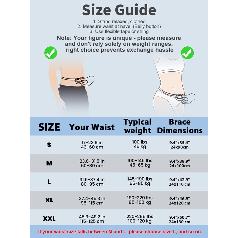 [PICK YOUR SIZE] - Please note to measure your waist circumference, which is at belly button level, not your pants size. S/M: Fits belly button circumference 24.4-30 inches. L/XL: Fits 30-38.6 inches. XXL: Fits 38.6-51.2 inches.