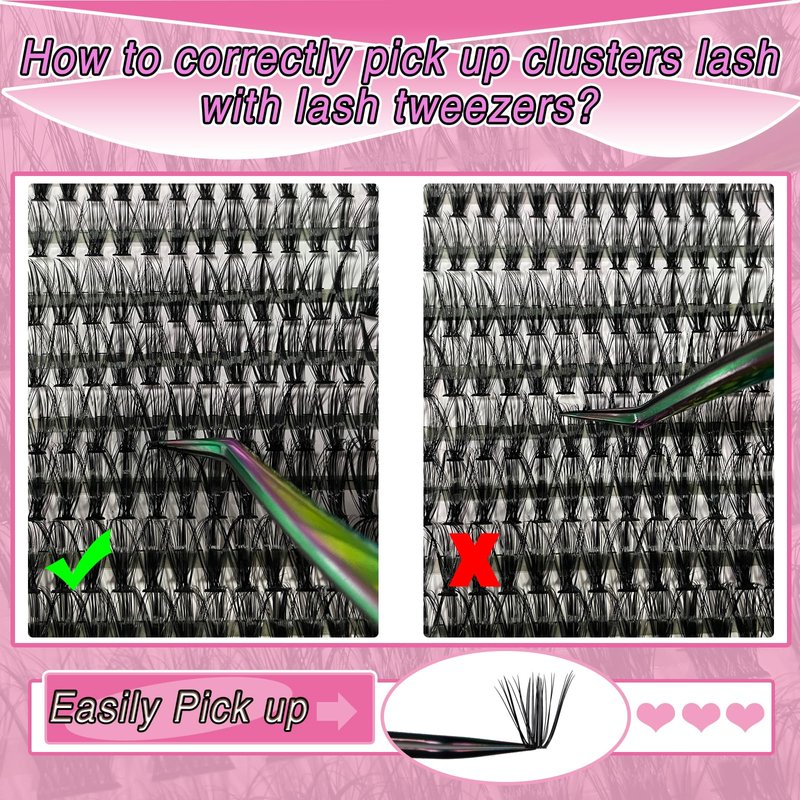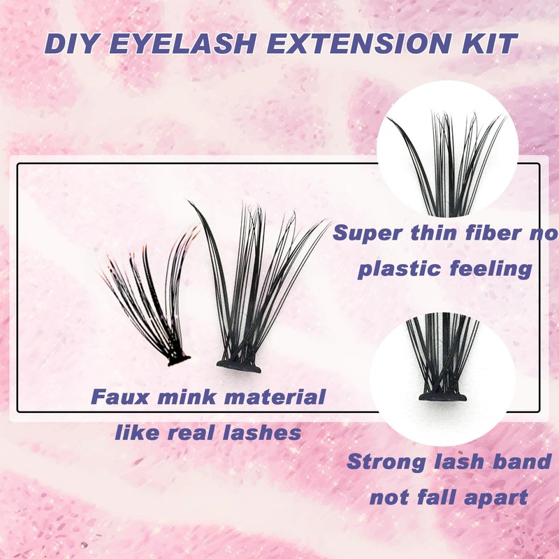 - 2.Clusted Lash Extensions Quality: These clustered lashes look like real lashes without the plastic feel, the lashes are made from soft faux mink fur, the premium lash extension kits with a matte sheen, lightweight and soft texture, bringing you a whole new DIY Eyelash Extension kit experience, but also unparalleled comfort throughout the day.