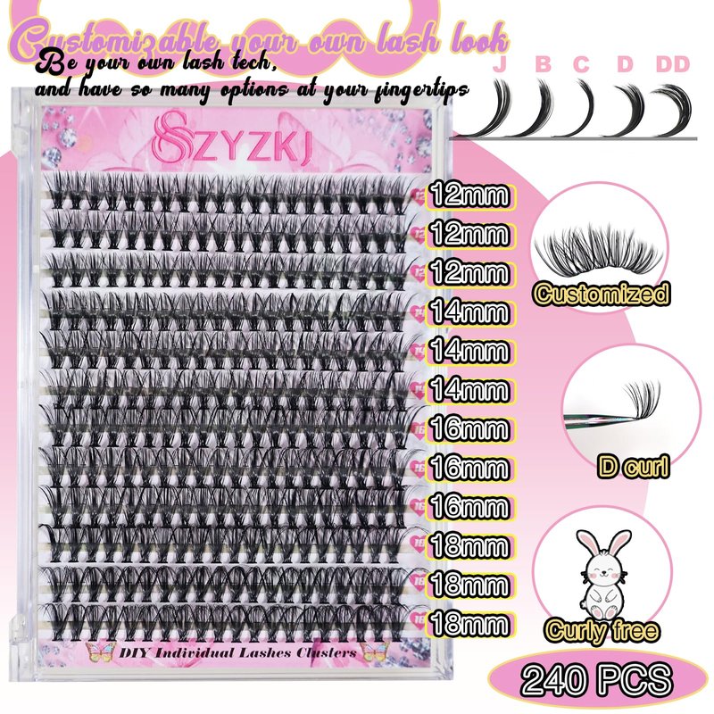 - 1.Volume eyelashes extension kit which includes 240pcs individual lashes, DIY your own Eyelash Extensions with 12-18mm ,D curl of volume cluster lashes, the mixed length allow for precision application, gorgeous results, and lash clusters are not easily fall apart, giving you the freedom to customize your lash look to your needs.