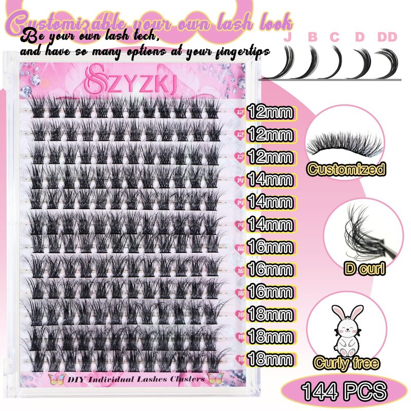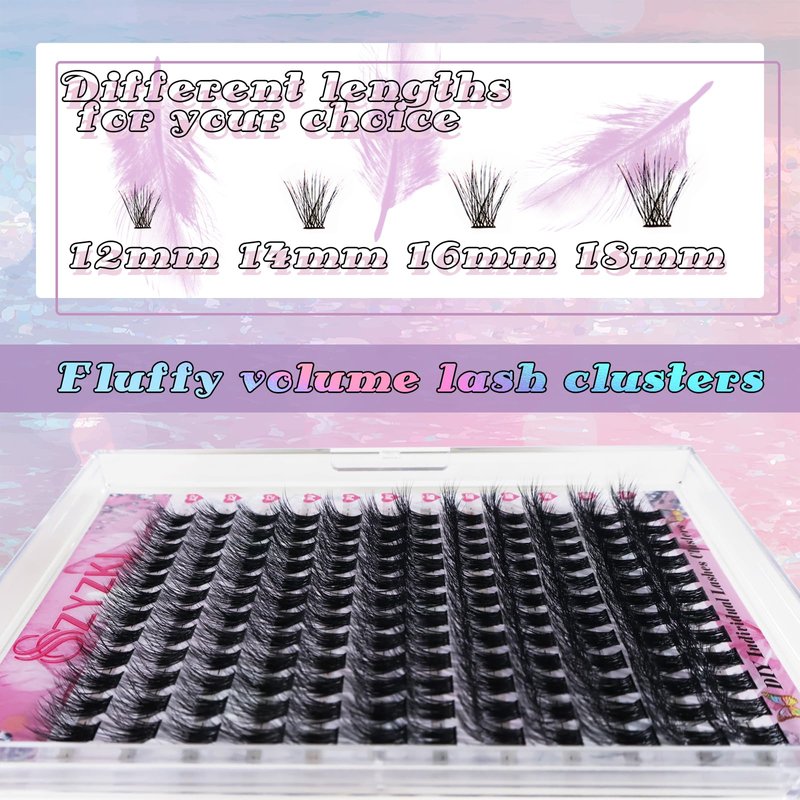 - 1.Volume eyelashes extension kit which includes 144pcs individual lashes, DIY your own Eyelash Extensions with 12-18mm , D curl of volume cluster lashes, the mixed length allow for precision application, gorgeous results, and lash clusters are not easily fall apart, giving you the freedom to customize your lash look to your needs.
