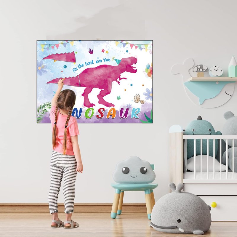 - Exquisite Dinosaur Design: Unique Watercolor Pink T-Rex design are very popular with kids, the Dinosaur Poster Game is suitable for children's birthday parties, Dinosaur theme party, summer roar party, school activities and family gatherings which can bring more fun to the party games for kids.