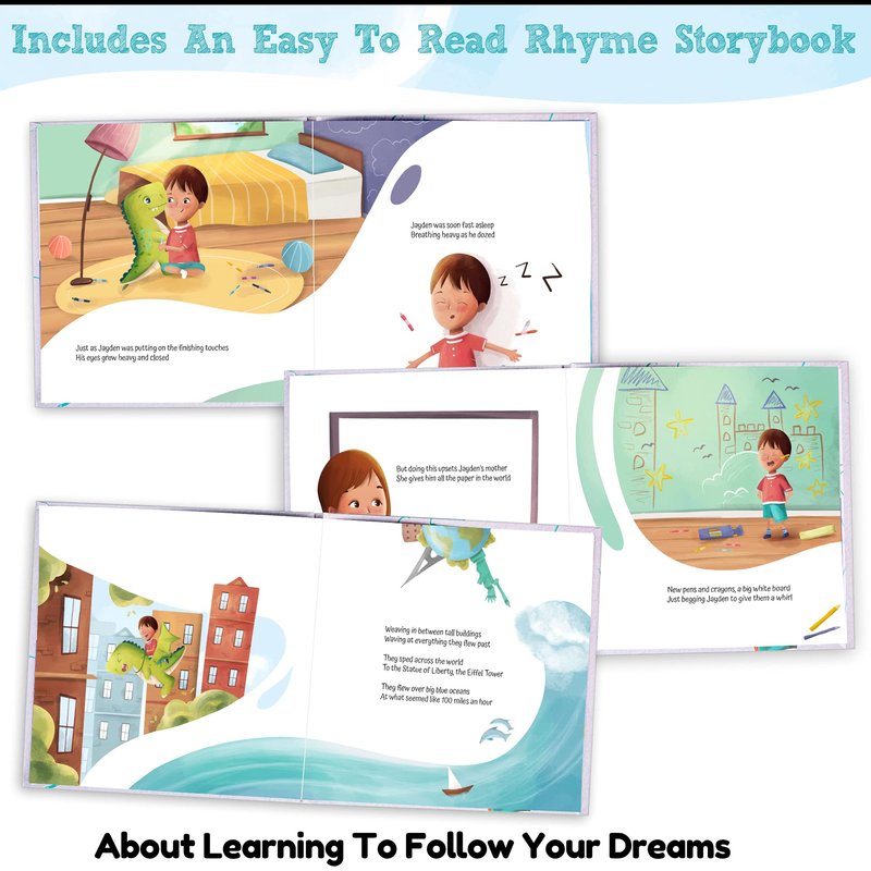 - ✔ EVERYTHING YOU NEED IS INCLUDED - No need for additional shopping. This complete giftset is both educational and fun! Comes with a giftbox, 3 washable markers, a tyrannosaurus companion, and a children’s rhyme story book.