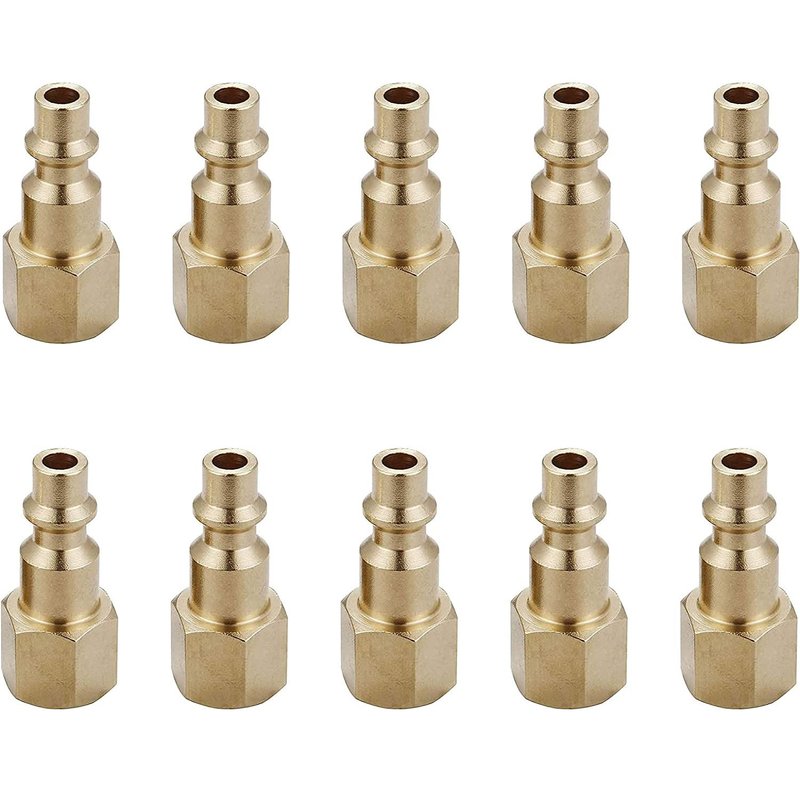 T TANYA HARDWARE Air Hose Fittings And Quick Connect Air Fittings, 1/4 Inch NPT Brass Female Air Coupler Plug (10 Piece) Industrial Type D, Air Compressor Fittings