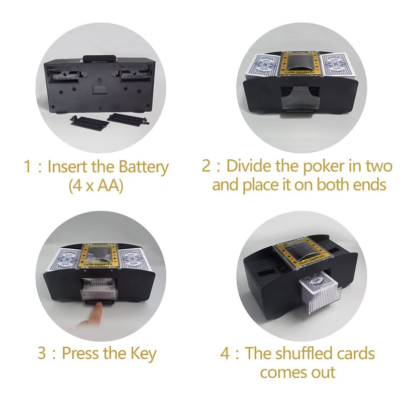 - Fully Automatic: TAAVOP automatic card shuffler machine only needs 4 AA batteries (Not included) to easily shuffle 2 decks of cards. The operation is simple and efficient, which can save a lot of game time.