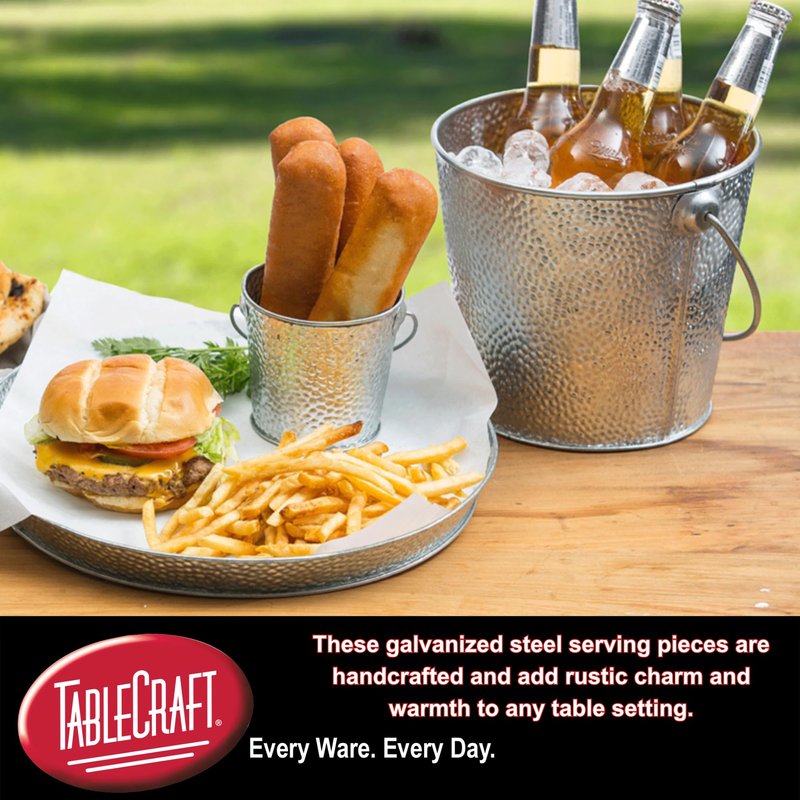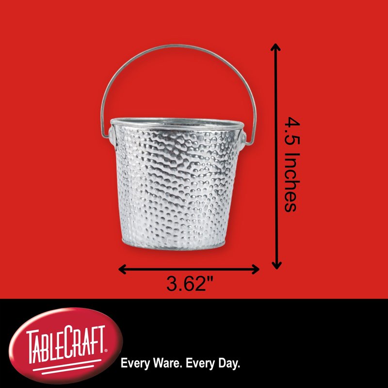TableCraft GT44 Round Pail, 4.5" x 4" x 3.625", Galvanized Steel, 16 Ounce Capacity, Versatile for Beverage Tub, Wine Cooler, Snack Bucket or Centerpiece Use, Matte Pebble Texture, Hand Wash Only
