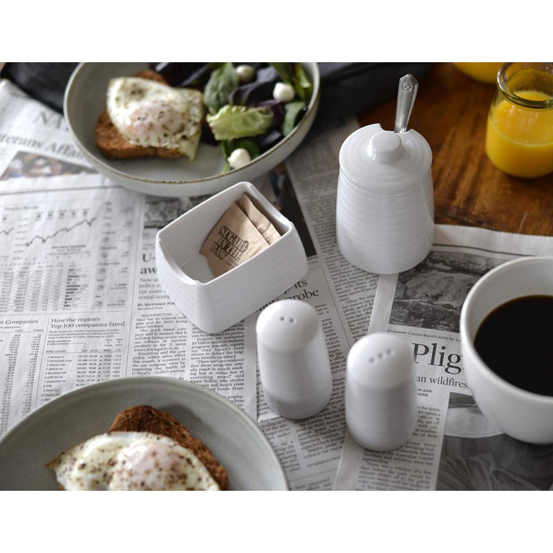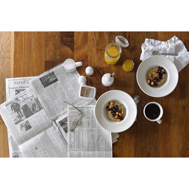 - Featuring the effortless, clean look of porcelain this collection will be a welcome addition to any table, indoors or out!