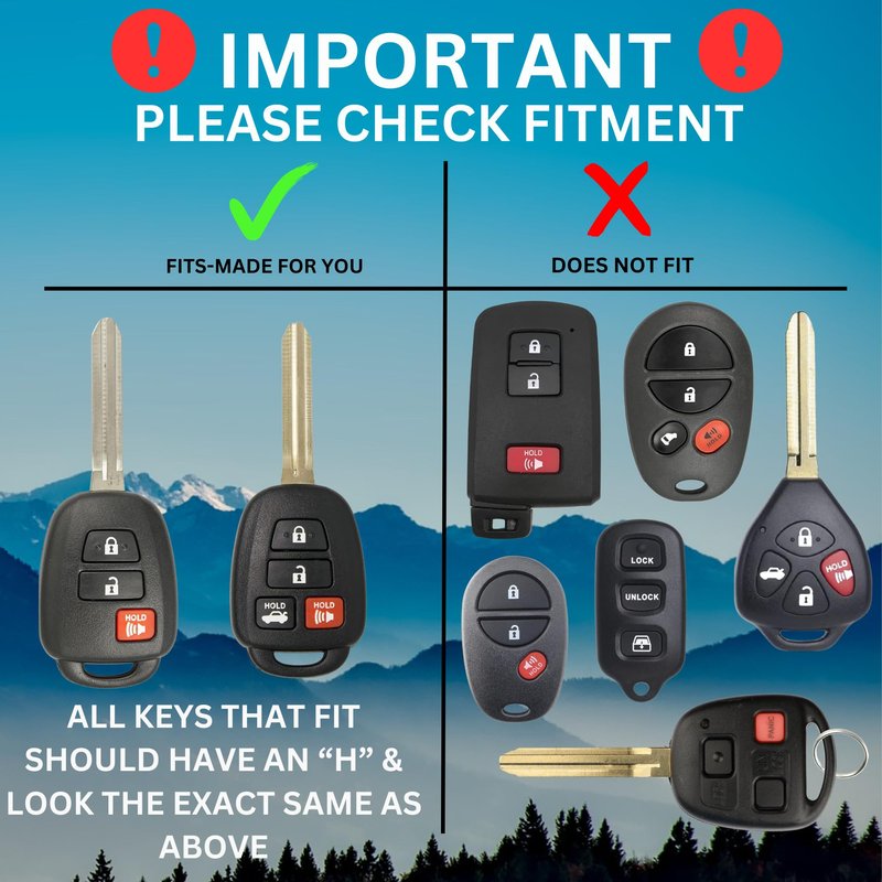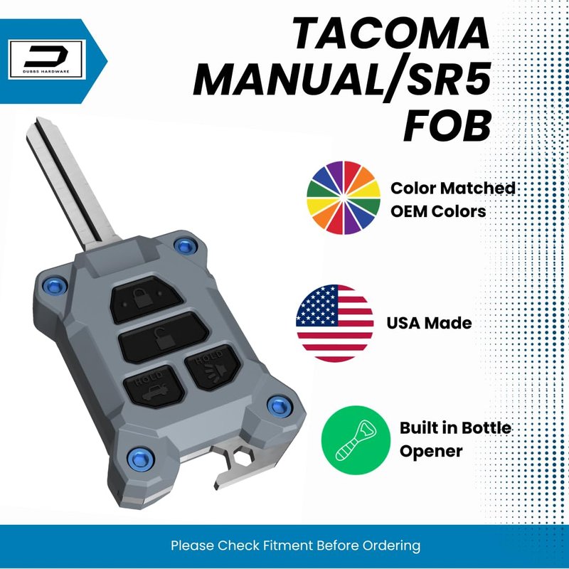 - TACOMA ACCESSORIES - Check Fitment Guide for exact fitment, this style of fob fits tacoma trucks from 2016-2023 and tundra 2018-2019 WITH NO PUSH TO START and few other models just make sure it has the "H" Key. Also make sure your OEM fob looks like the one shown in the FITMENT GUIDE!