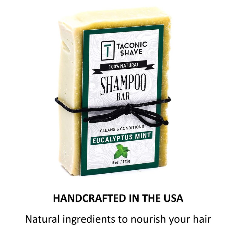 Made with all natural ingredients, our Taconic Shave shampoo bar will nourish your hair. Once you try our shampoo bar, you will never go back to bottled shampoo again! Our shampoo bar has no artificial fragrances or colors, animal products, petroleum products, alcohol, or parabens - it is 100% natural and contains many organic ingredients. This is a large bar - we suggest cutting it in half prior to use and using only one half at a time. Do not store in the shower - allow to dry in between uses. Natural Ingredients, Artisan Crafted & Made in the U.S.A.