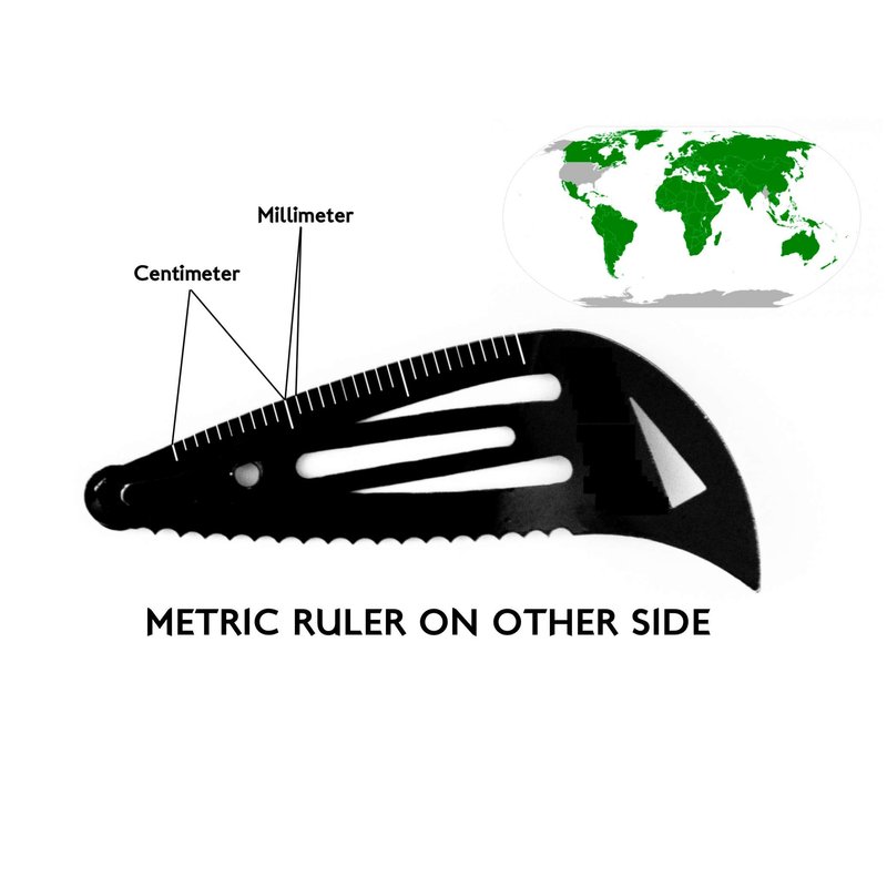 - Serrated edge (not-a-razor & safe on hair)