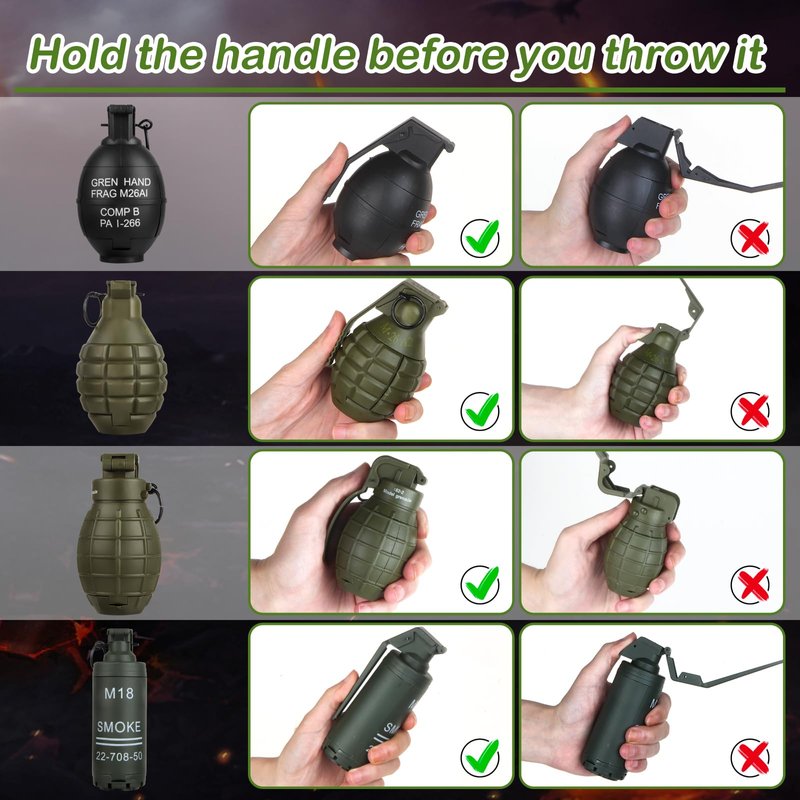 - Easy To Use:Unscrew the rear cover, loading foam ammo or flour, tighten the back cover, wait for your right game moment, pluck the pin and throw it out just.