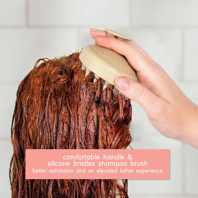 - This shampoo brush deep cleanses dirt and dust, all sticking to the natural oils that exist on your scalp and hair. The silicone bristle of this scalp brush is not too hard or too soft, but it is just right firmness, so you can cleanse and massage even sensitive scalp without irritation. If you try this shampoo massage brush once, you won't be able to go back!