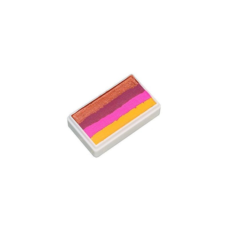 1-Stroke Split cake or rainbow cake works great for creating colorful designs quickly and easily. High quality, wax-based face paint allows designs to flex with body movements without peeling or cracking. TAG face paint easily blends in comfortably and is gentle on skin. Activates easily with minimal amount of water. 30 gm Split Cake is good for 60 - 150 applications. Comes in a rectangular case, approximately 1 1/4 Inch wide and 2 Inch long.