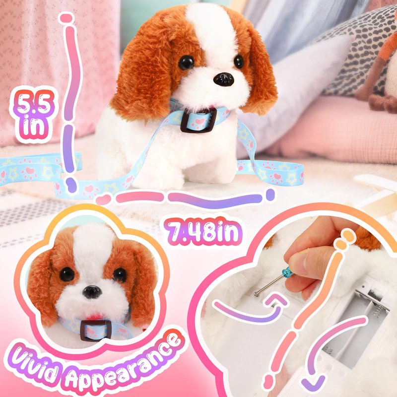 Tagitary Plush Toys Puppy Electronic Toy Walking and Barking Dogs,Tail Wagging Fake Dog Interactive Dog Toy for Kids with Leash,Easter Christmas Birthday Gift for Toddlers Kids