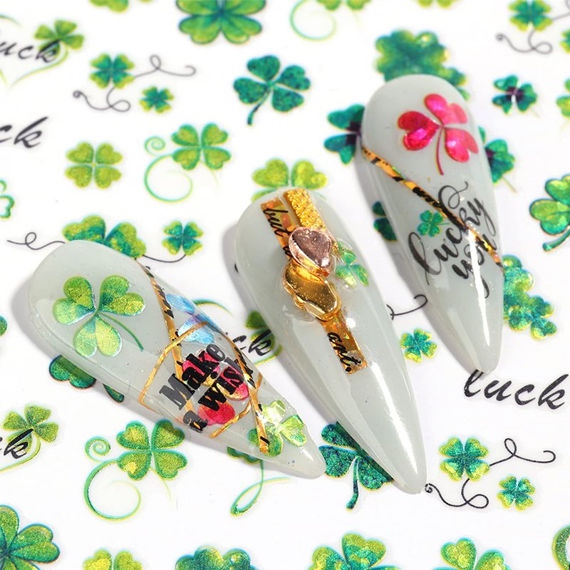 TailaiMei 10 Sheets St. Patrick's Day Nail Art Stickers, Self-Adhesive Shamrock Nail Decals for DIY Nail Decorations, 3D Design for Leprechaun (Cute Style)