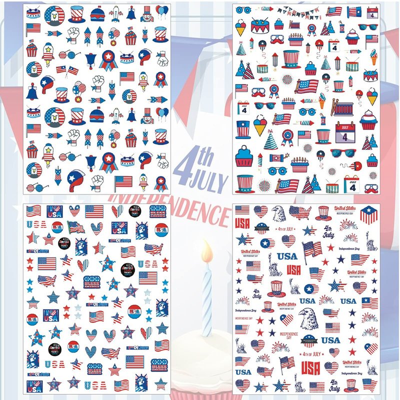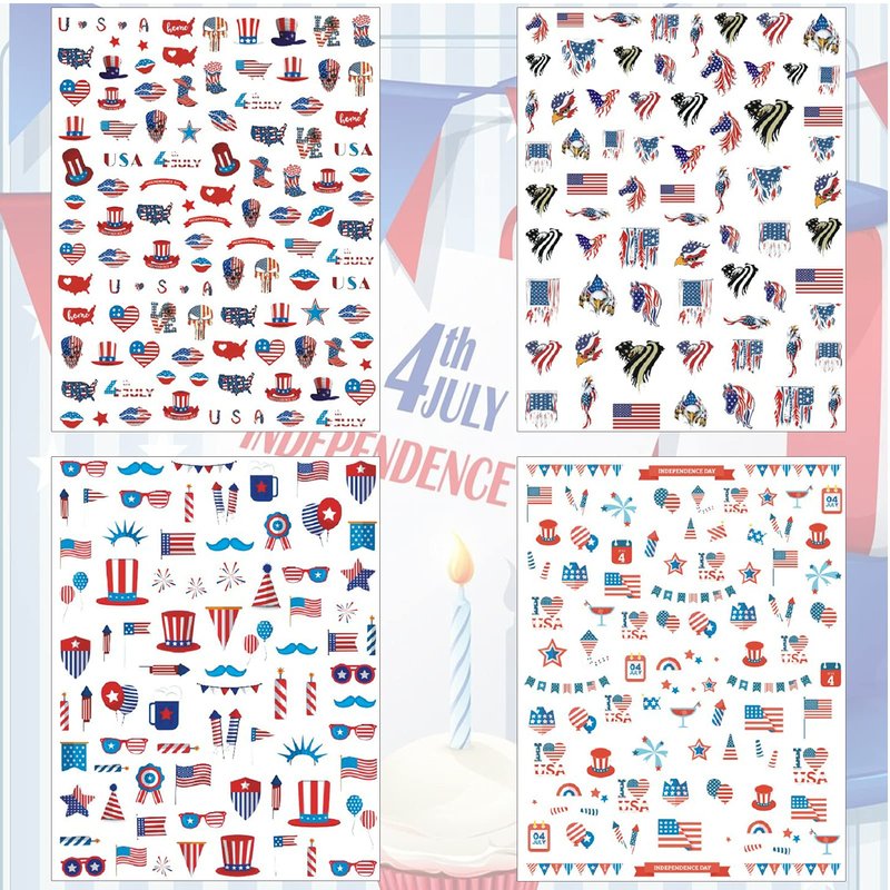 - 🗽Multiple design available: You will get 1000 pcs nail stickers perfect for fourth of July. Includes all sorts of Independence Day theme classic images: American flag, USA, heart, star, butterflies, eagle and so on, add joy festival atmosphere to your Independence Day party.
