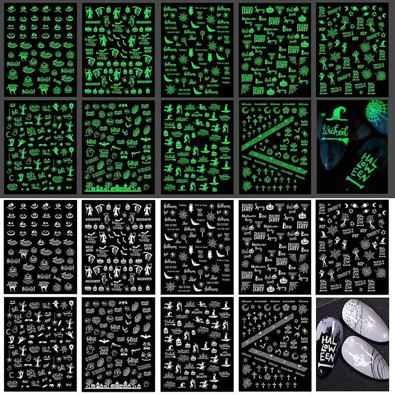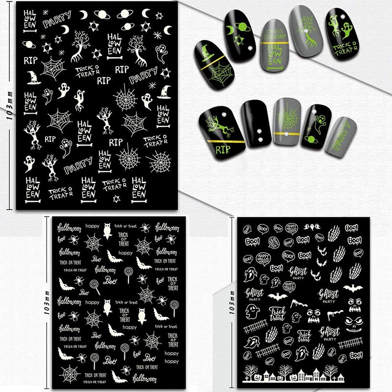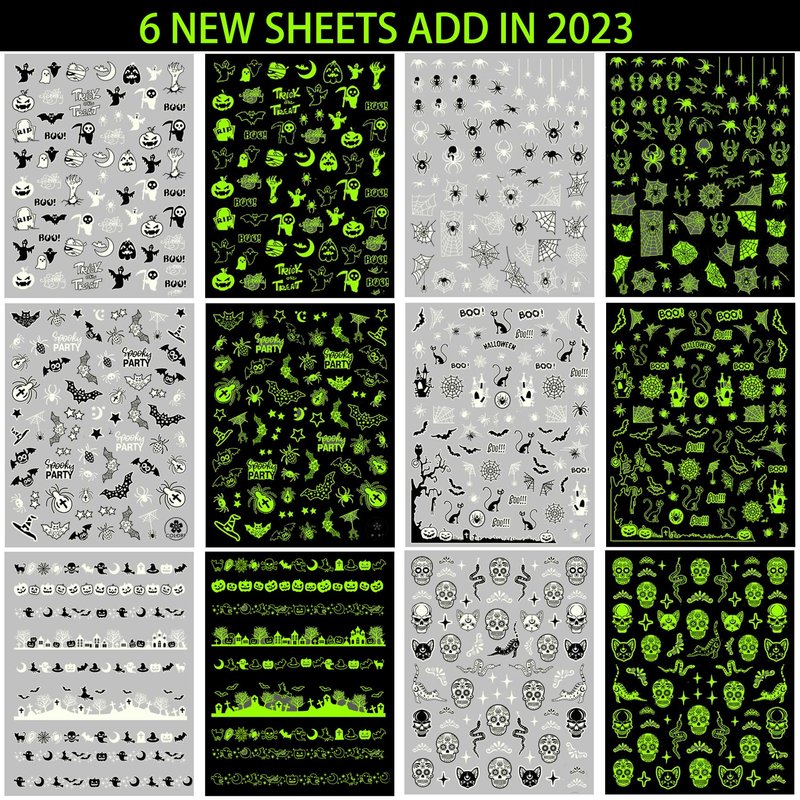 TailaiMei 15 Sheets Halloween Nail Stickers Glow in The Dark, Fluorescent Design Nail Decals, Self-Adhesive DIY Nail Art Tips for Women Manicure