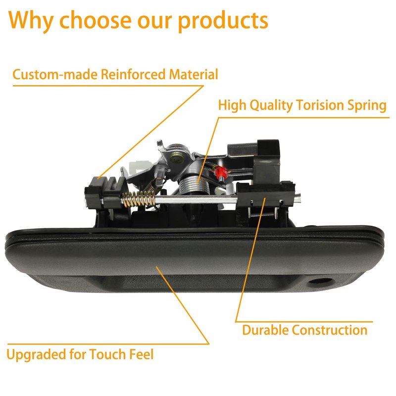 - 【Premium Quality】Our tailgate liftgate handle is manufactured from custom-made reinforced ABS plastic and steel, solid and durable. Long life-span matters, that is why our door latche's bolt and spring are made of hardened steel for durable, long-lasting service life.
