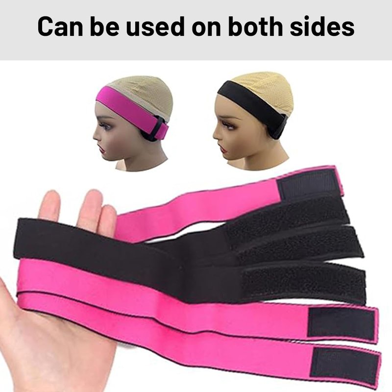 Tailsmart 4 Pcs Elastic Bands for Wig (Rose Red),Lace Melting Band with Ear Covers, Wig Bands for Keeping Wigs in Place.
