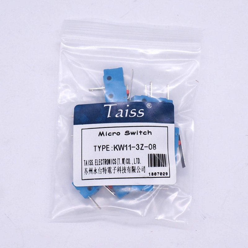 Taiss 10pcs Micro Switch 250V 5A 2 Pin 1NO Handle Limit Switch Tact Switch Sensitive Micro Switches Long Life 1 Million Life KW11-3Z-08