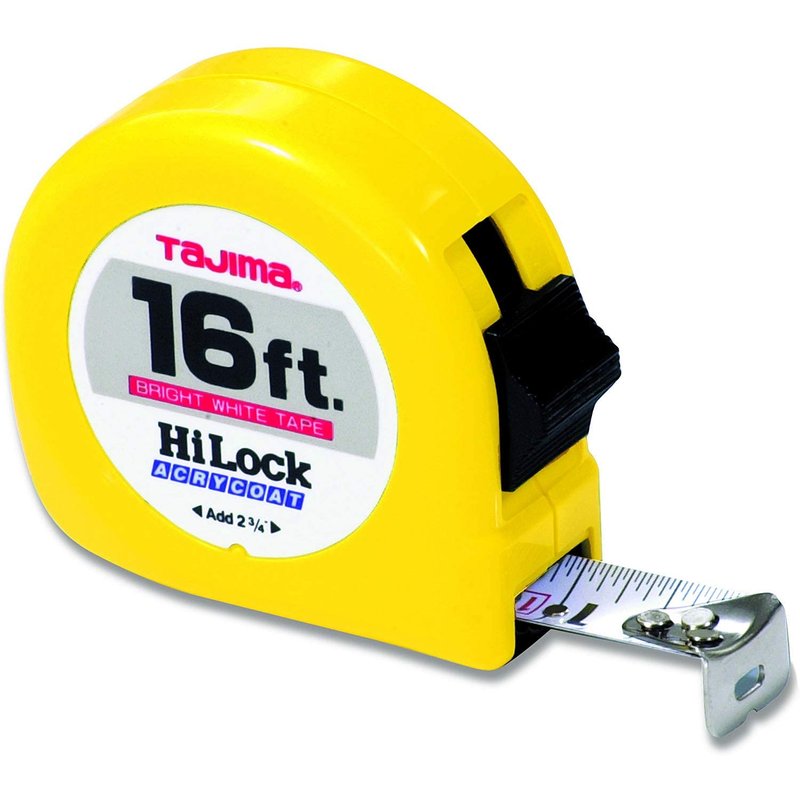 TAJIMA Tape Measure - 16 ft x 1 inch Hi-Lock Measuring Tape with Durable ABS Case & Acrylic Coated Blade - HL-16BW