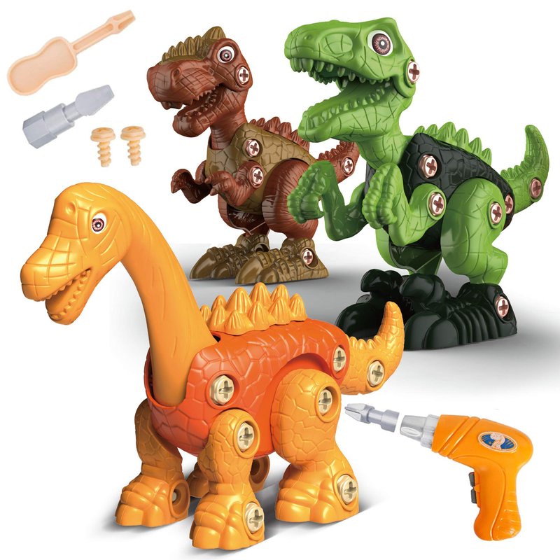 - [Take Apart Dinosaur Set] – This ultimate dinosaur take apart toy for boys comes with three different dinosaurs. Have your kids assemble and build all three dinosaurs on their own! With awesome design, these dinosaurs look more realistic than ever! Amazing gifts for 4 year old boys.