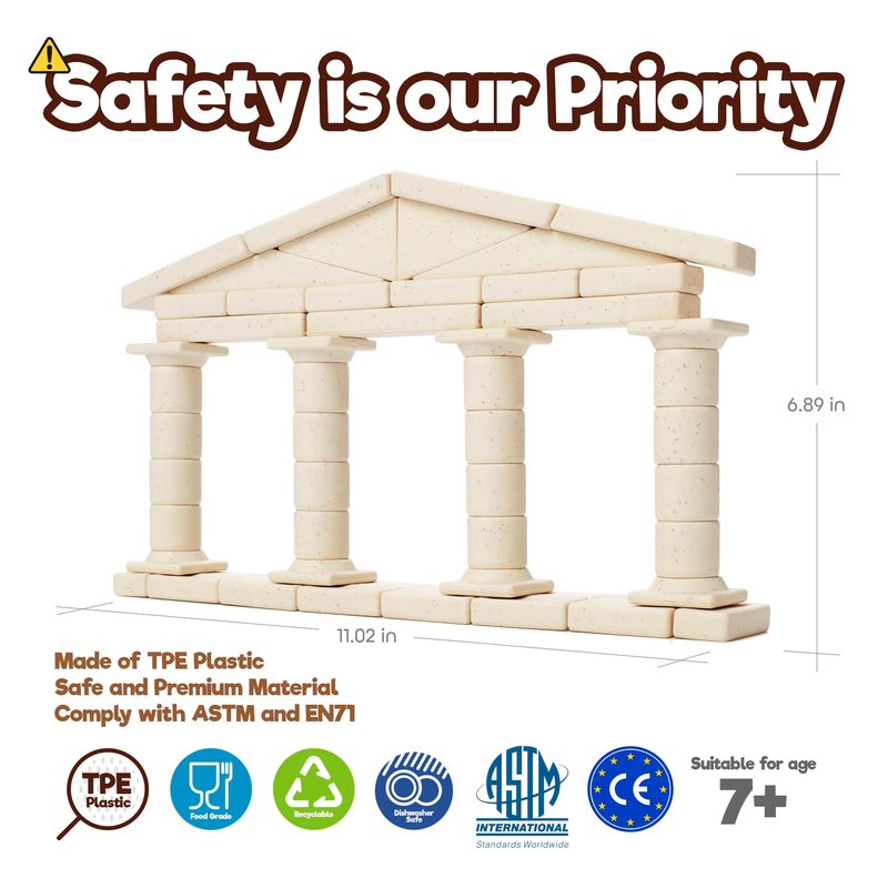 - 𝐋𝐎𝐎𝐊𝐈𝐍𝐆 𝐅𝐎𝐑 𝐀 𝐓𝐎𝐘 𝐓𝐇𝐀𝐓 𝐁𝐀𝐋𝐀𝐍𝐂𝐄𝐒 𝐒𝐀𝐅𝐄𝐓𝐘 𝐀𝐍𝐃 𝐋𝐄𝐀𝐑𝐍𝐈𝐍𝐆?: Crafted from robust, child-friendly TPE plastic, the ArchKidTech Greek Facade prioritizes safety. This combination of secure play and intellectual stimulation makes it a thoughtful gift and a valuable investment in your child's learning journey.